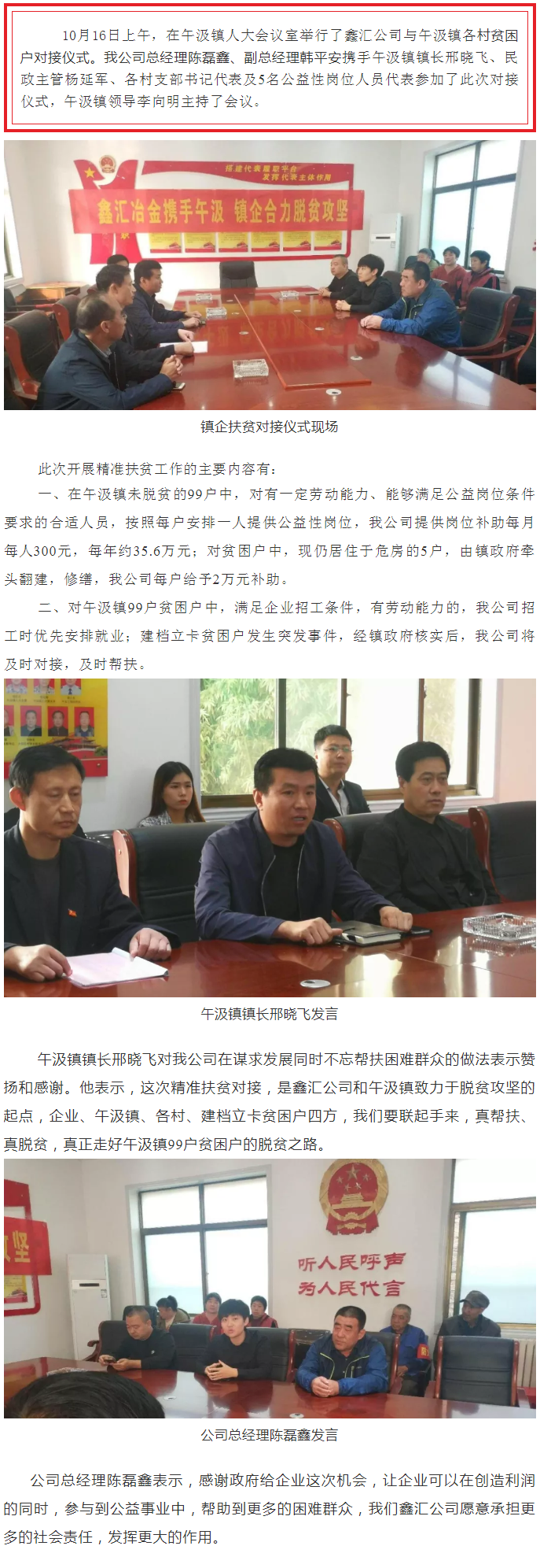 新聞?wù)?鑫匯冶金攜手午汲,鎮(zhèn)企合力脫貧攻堅(jiān)
