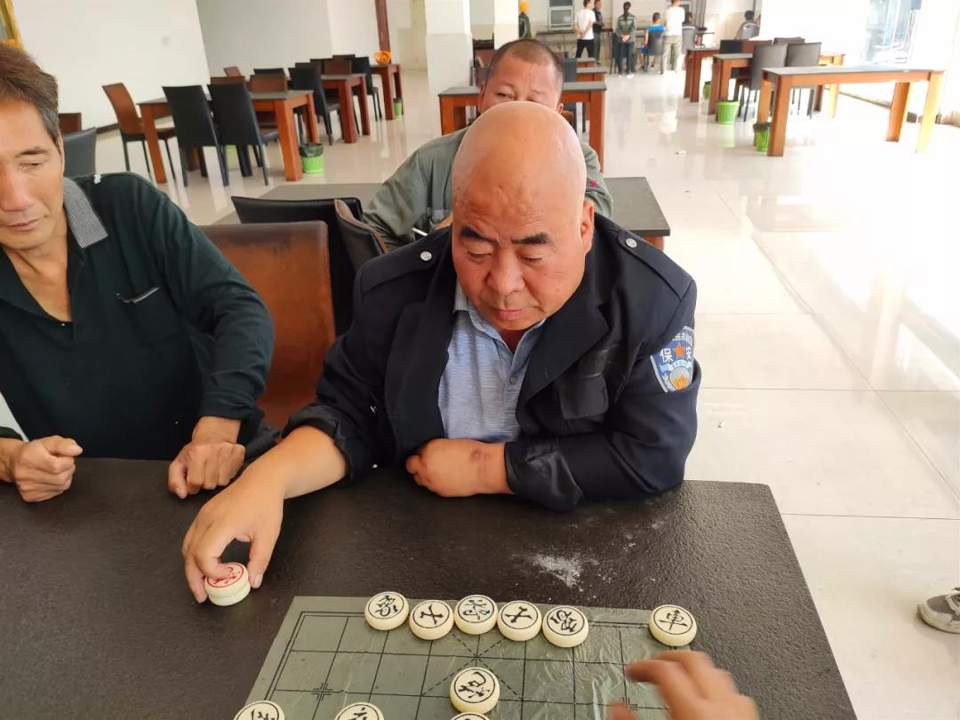 象棋比賽現場棋手們認真思考,謹慎行棋,或調兵遣將、或躍馬揚鞭。他們淡定自若,冷靜地觀察著棋盤,謹慎地走著每一步棋。雖然表面平靜,但是棋盤上已經上演著激烈的“楚漢爭霸”。這場腦力風暴大比拼中,保衛部李保田最終奪得第一名。